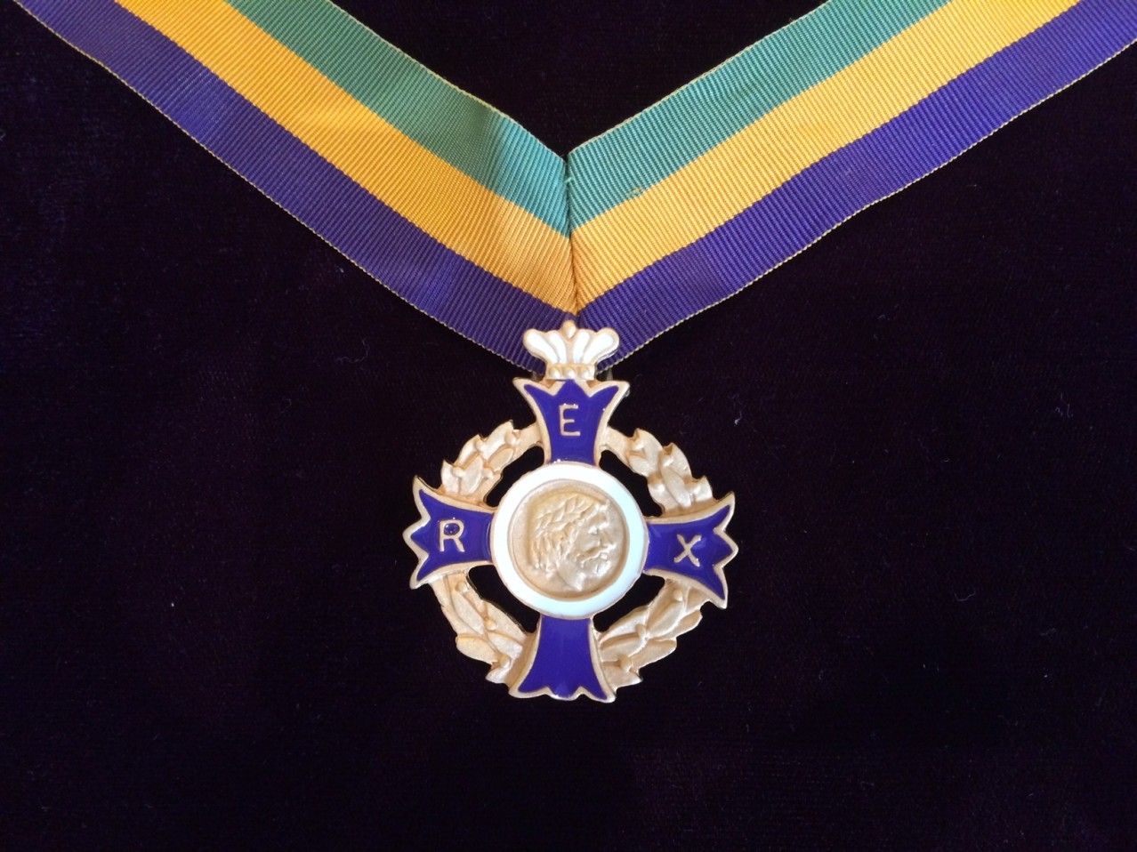 The Rex ducal decoration and its tri-colored ribbon are worn only by Rex members, dignitaries honored by the King of Carnival, and Dukes of the Realm in the Rex Court.